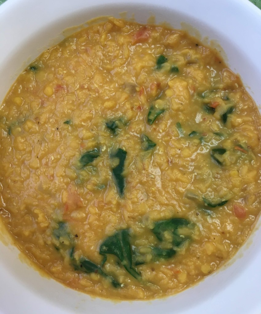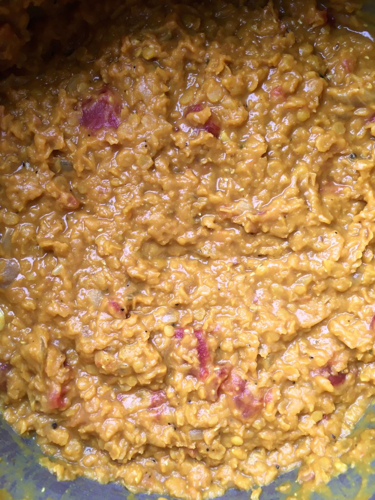 Traditionally lentil dahl/dal stew is not a one pot meal, as the Tarka (sauteed onion,garlic ginger and whole spice seeds such as mustard seeds, nigella seeds and cumin seeds) is made seperately in another pan and added at the end, but this is a simplified one pot version of Dahl using ground commonly found spices and of course, its dairy free.