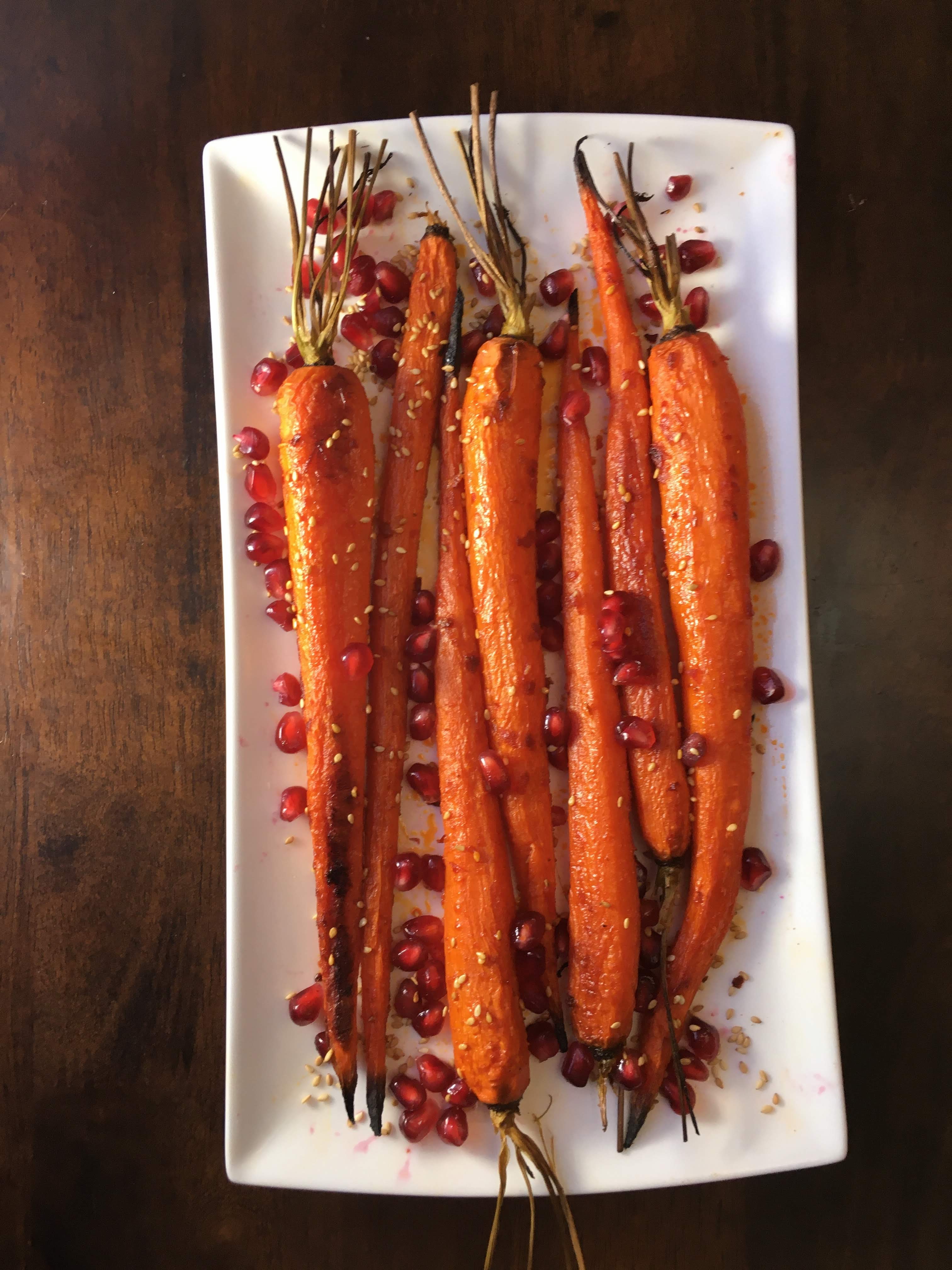 Red harrisa roasted carrots with optional honey glaze are a spiced up version of honey roasted carrots for a colorful delicious Christmas holiday spread or anytime you need an easy healthy dinner side.