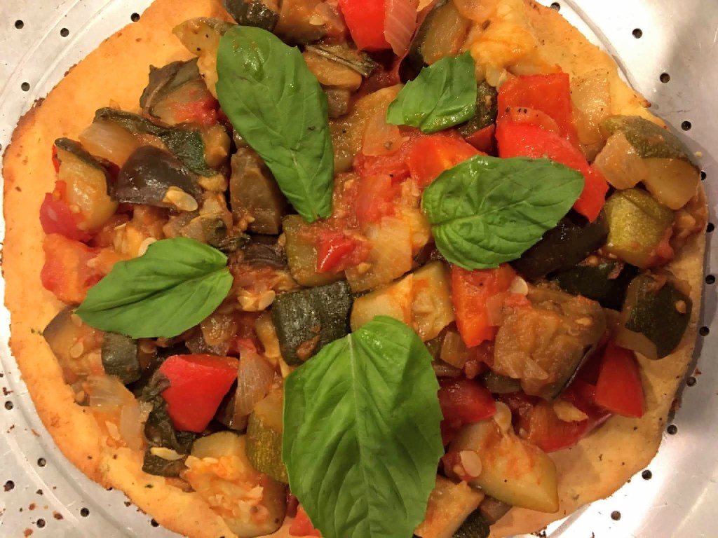 Variation: instead of ratatouille, top with sundried tomato pesto and if you can have cheese some optional crumbled goat cheese or parm (cheese can also be added on the ratatouille topping)