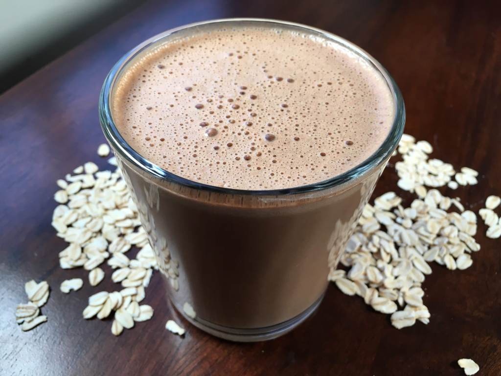 blend oats water and cocoa in a high speed blender then if desired strain through a nut milk bag or cheesecloth over a bowl to get smoother texture.