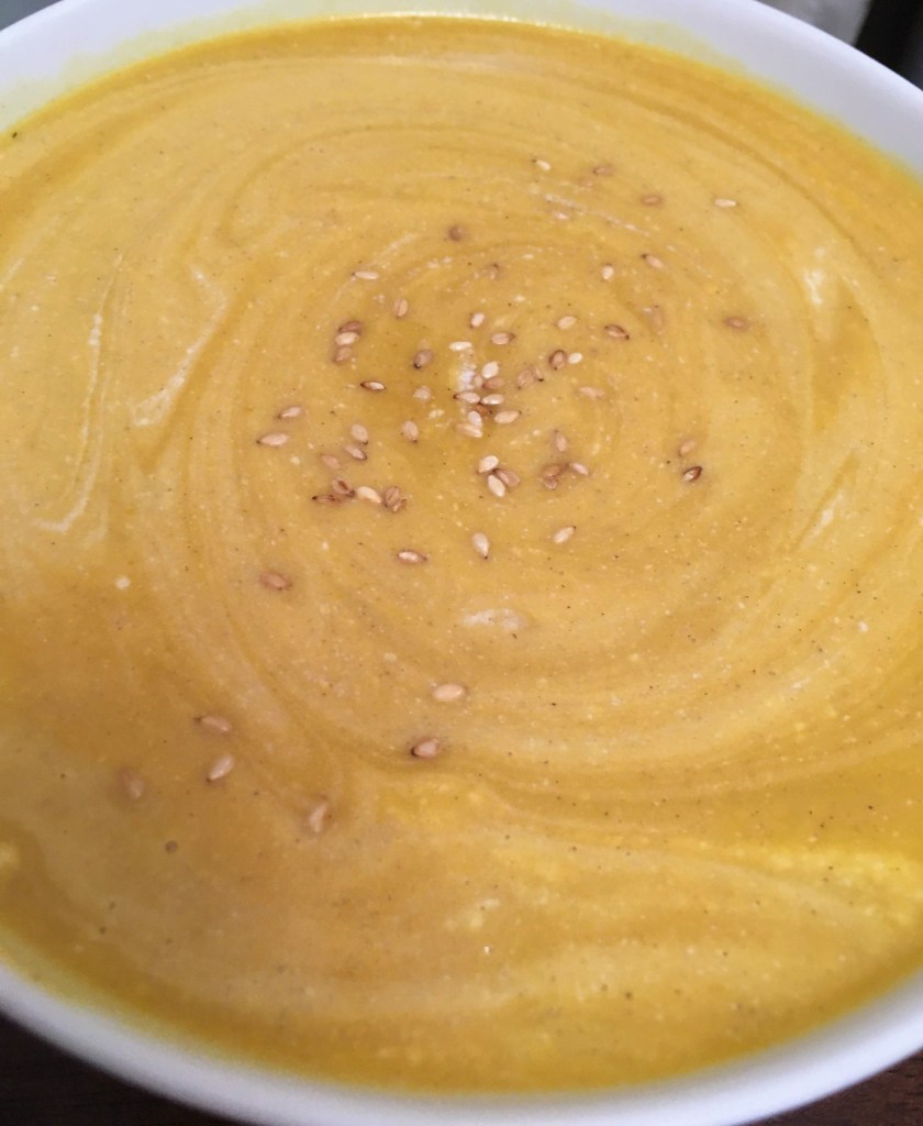 The best damn soup for quarantine or any day when you want comfort food that is healthy! Cream of Pumpkin squash soup with coconut milk as good as pumpkin pie, but healthier! Made with pantry staples and a few common fresh ingredients, plus variations if you don’t have some ingredients. Its my favorite soup of all time!