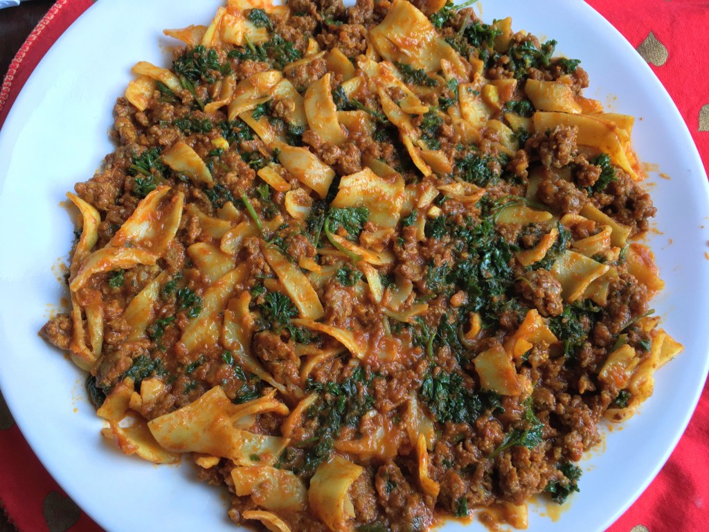 I used approx 3/4 jar tomato sauce; initially I used about 1/3 jar and added more to leftovers as they sopped up the sauce in the fridge. Almost a whole bunch parsley added in the last few mins. Ideally some red bell pepper or carrots and celery can be cooked with the meat, but I didn’t have any that day so I loaded it with parsley. When you don’t have what you want you make the most of what you have right?