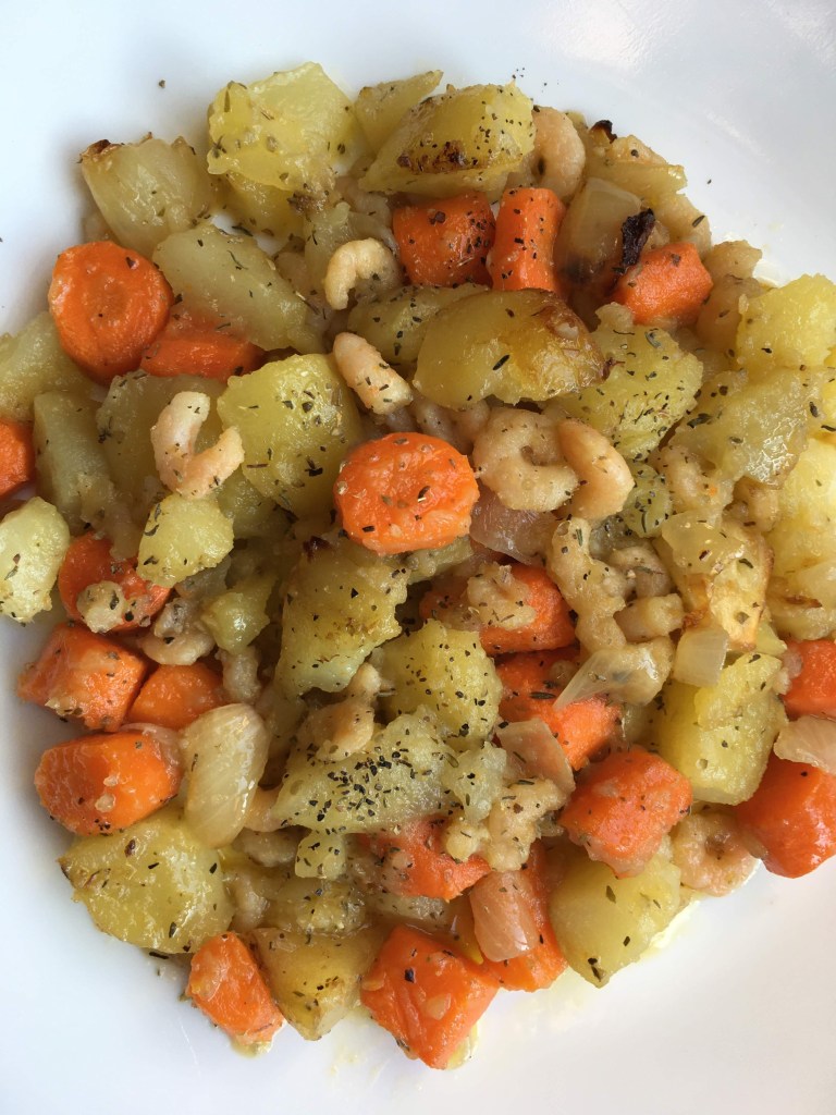 Or have this delicious focaccia as a starter before Baked shrimp with herbs, potatoes and roasted veggies, also a one pan meal! Normally I make it with fresh shrimp resulting in more photo-perfect crispy potatoes and caramelized onions, but I used frozen shrimp during lockdown times and it was still absolutely delicious though a little more stew like! A healthy satisfying pescatarian dish.