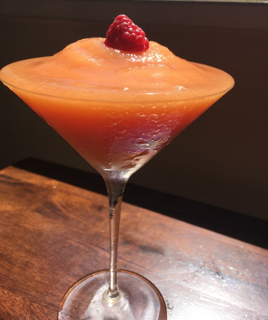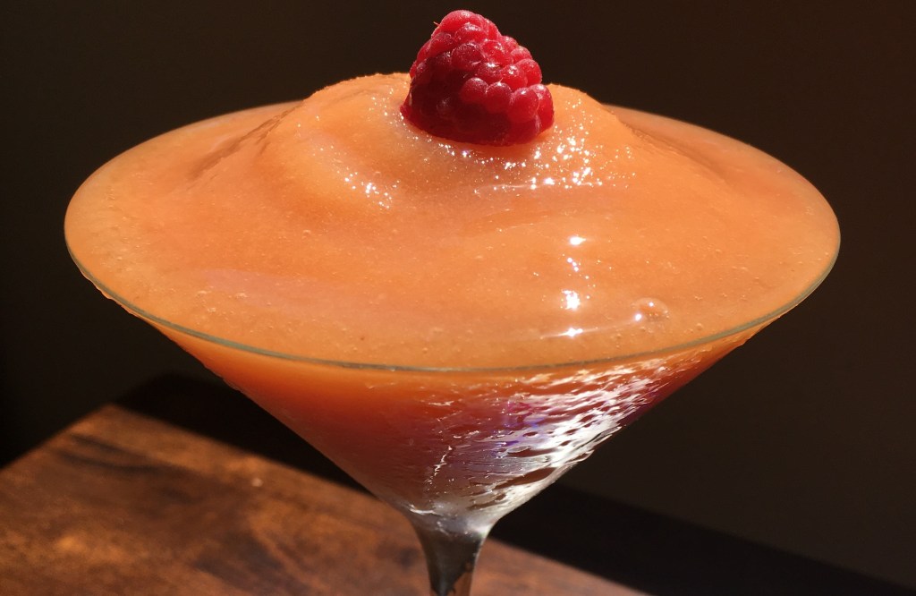 A tropical, fruity bellini cocktail that is fruit sweetened and naturally flavored, but you won’t be able to tell because it tastes like the Cactus Club Cafe Bellini machine mix cocktail/Frose machine cocktail and it is downright delicious!