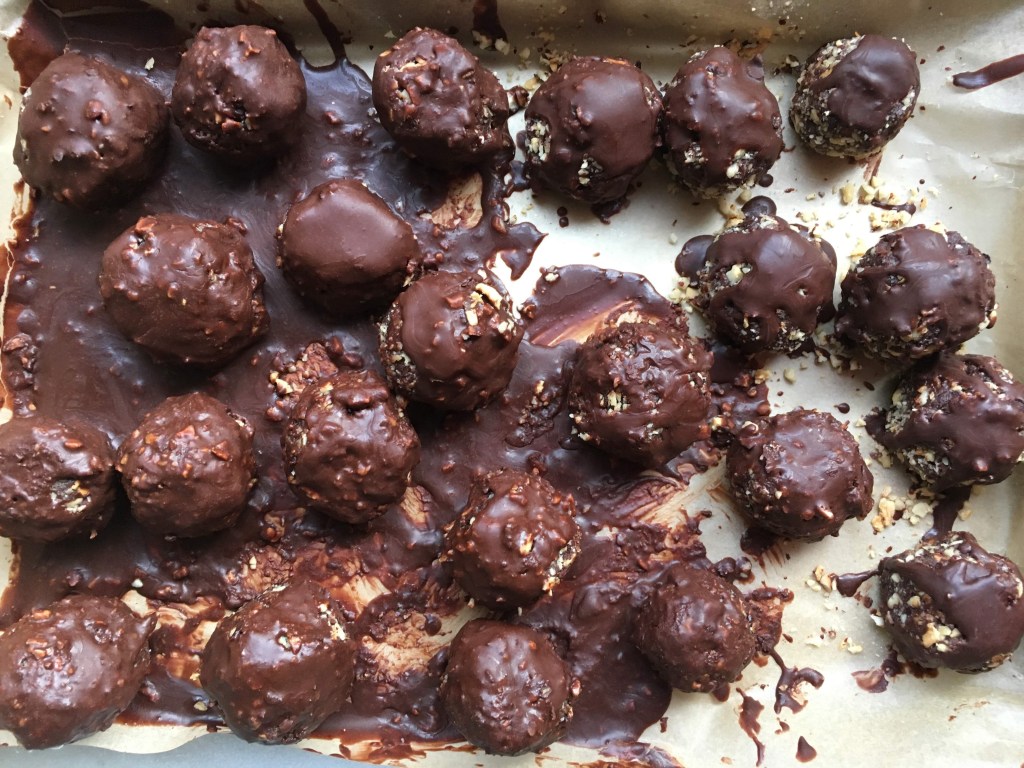 This recipe for ferrero-like you date truffles/bliss balls is very forgiving and customizable to your needs, so you can add more or less of the ingredients to your taste, as some people dont like dark or intense chocolate,some like things very sweet, some like less sweet etc. I have left the ratios slightly open depending on the type of chocolate you have and how bitter it is, in the recipe I share the brand of fairy free chocolat chips I like the best for flavor, as I’ve tried a bitter kind before, not all dark chocolate is created equal!