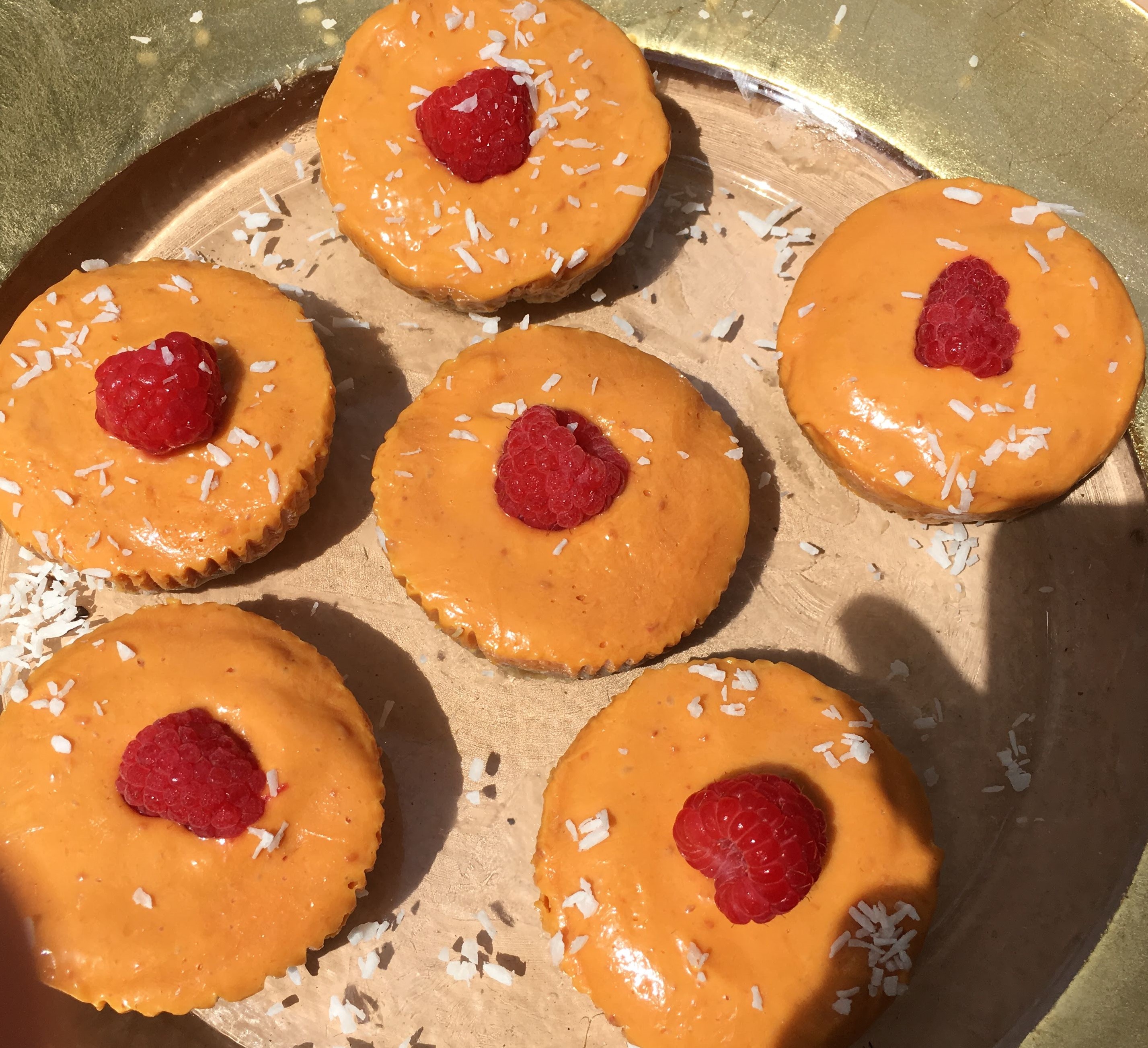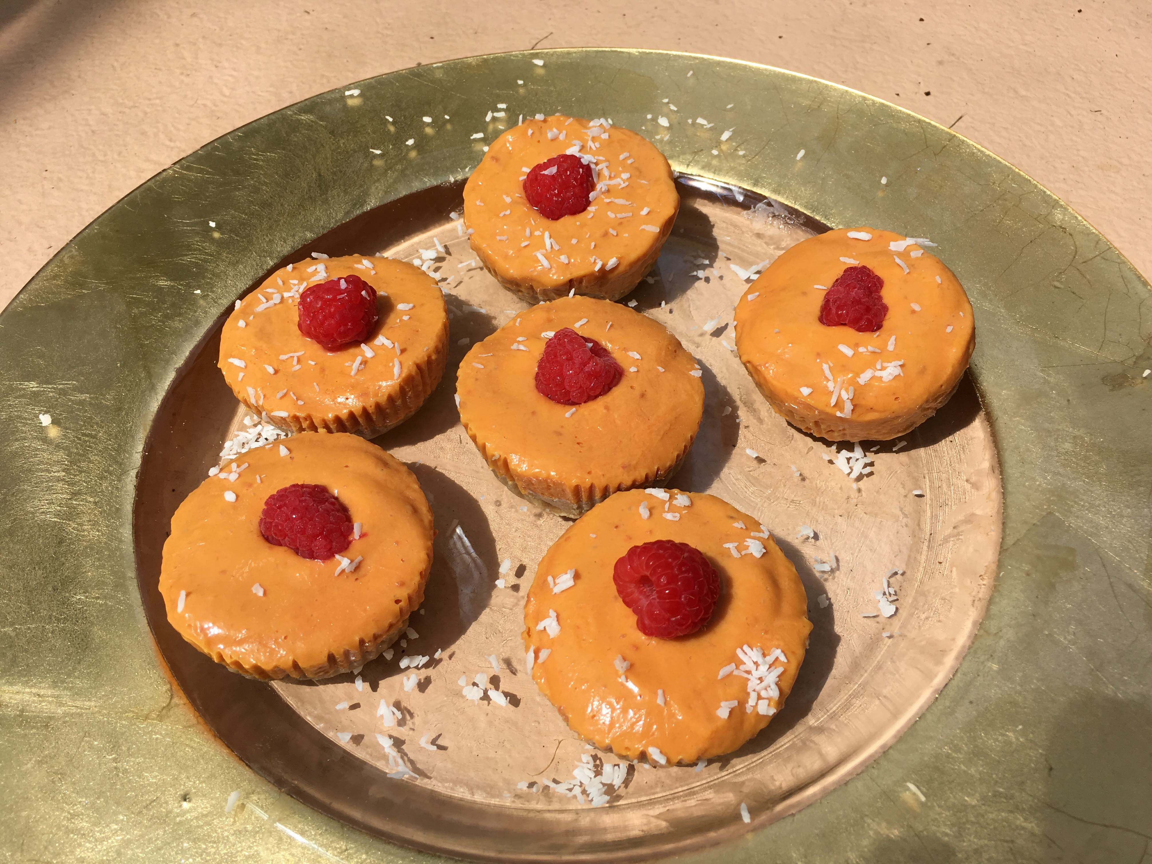 note: they will harden too much after 2.5 hours so make them just a couple hours or so before serving or if you plan to make them ahead then instead of a nut crust use a soft graham cracker crust and for the filling blend in about 2 tbsp of vodka or hard liquor into your filling as alcohol doesn’t freeze so it will keep them soft(this is a great tip for sorbet btw!perhaps a mango raspberry sorbet variation of these cakes! for that just freeze the sorbet in a loaf pan). if using alcohol freeze them longer until set for about 5 hours or so.