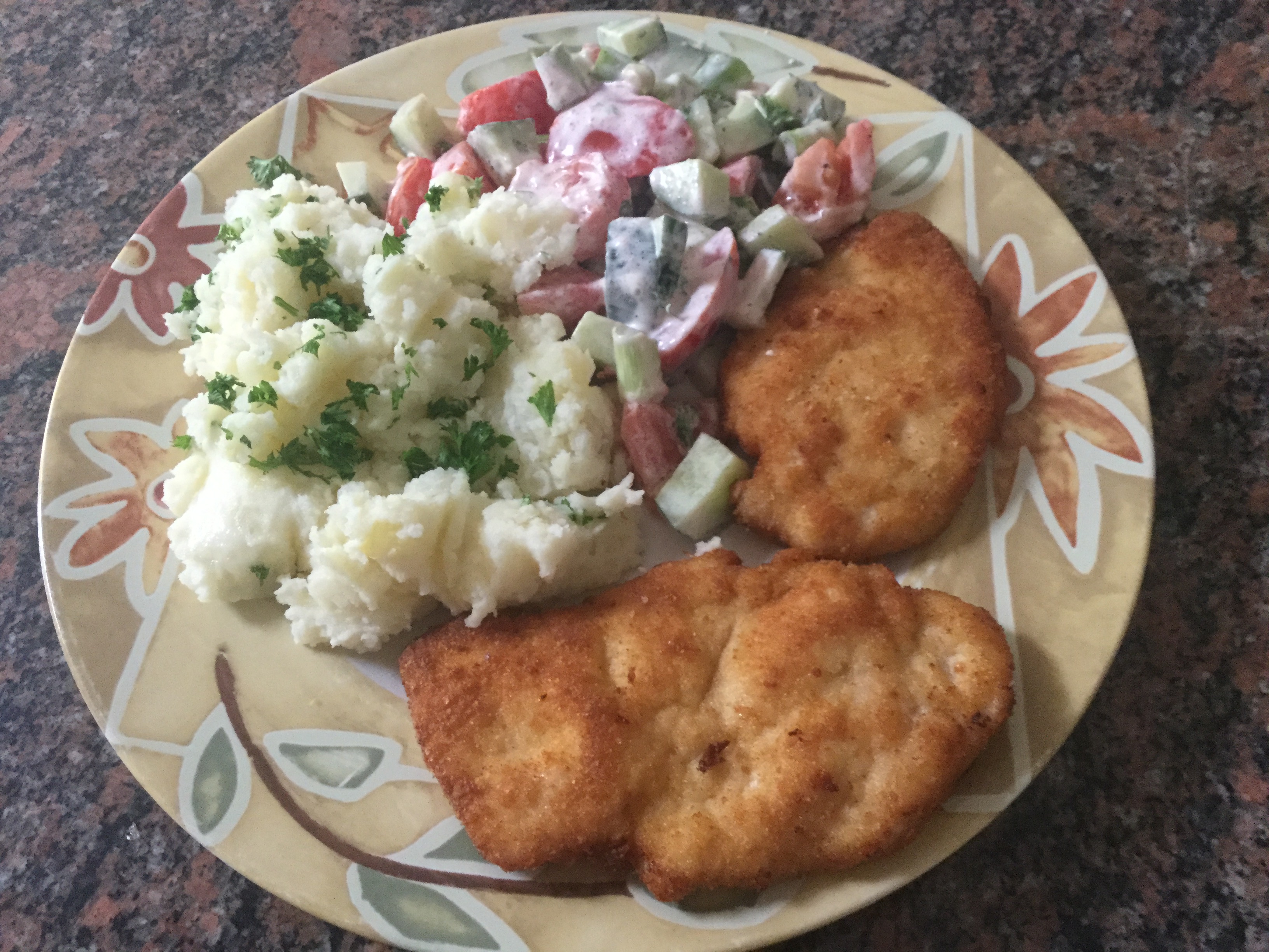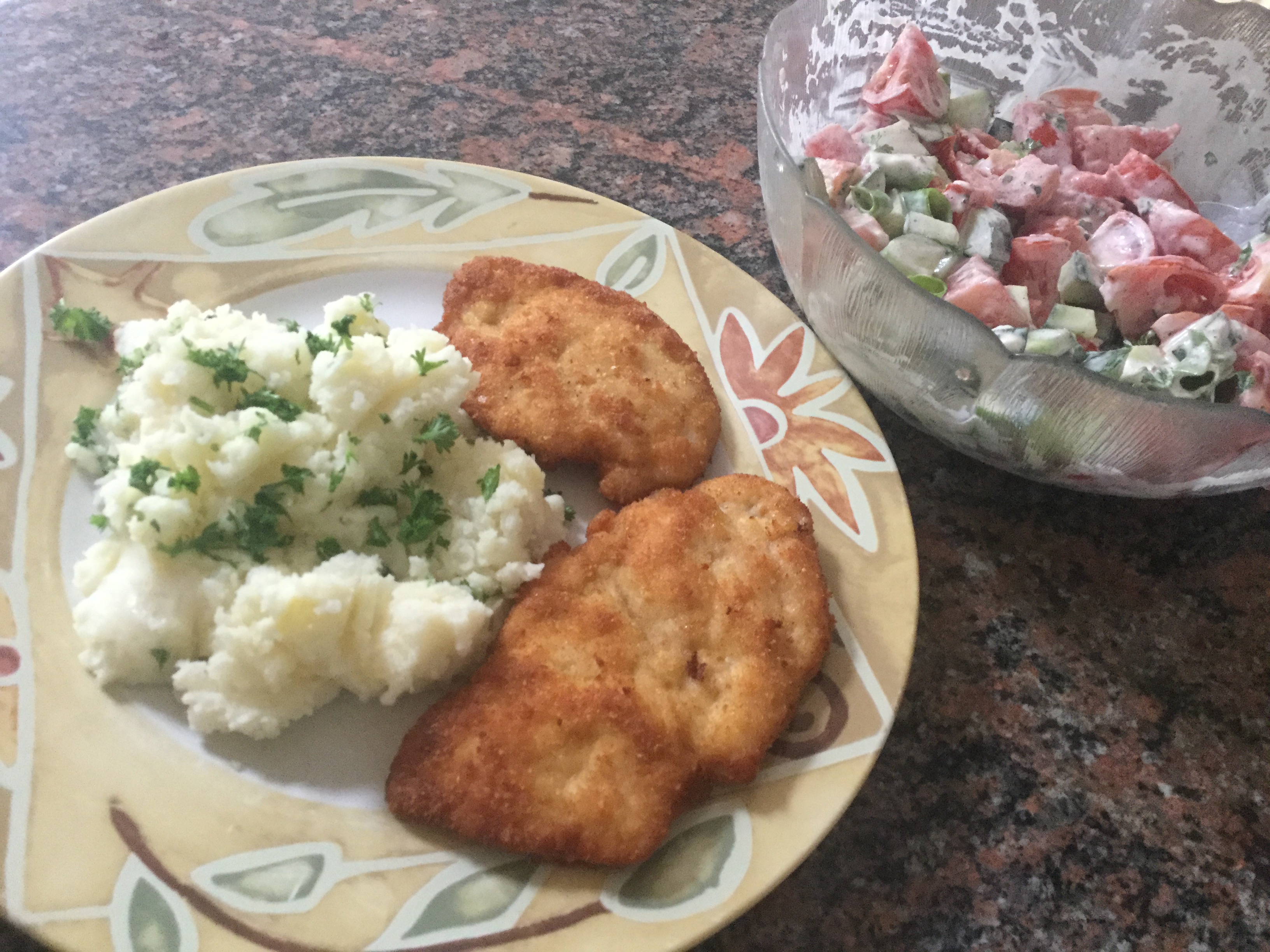 Pic: chicken schnitzel ( plus traditional pork variation in recipe)