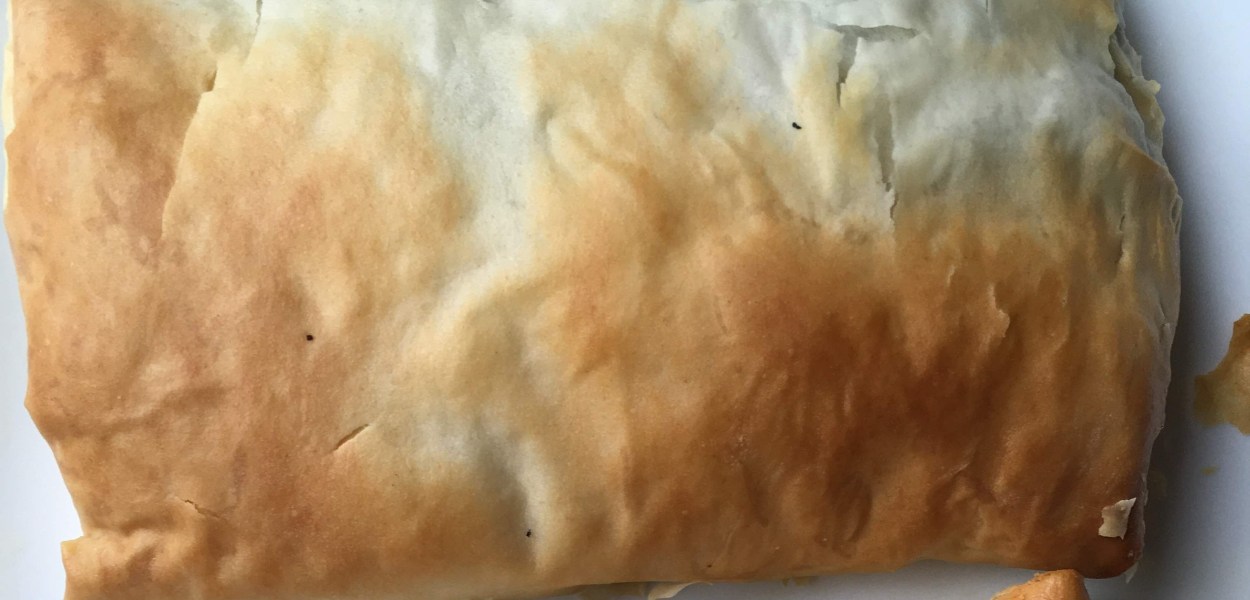 Spanakopita pie made dairy free and vegan! Flakey phyllo pastry squares or triangles filled with delicious ratatouille or antipasto to enjoy hot or cold. These are a great party food for New Years, holidays, and potlucks.