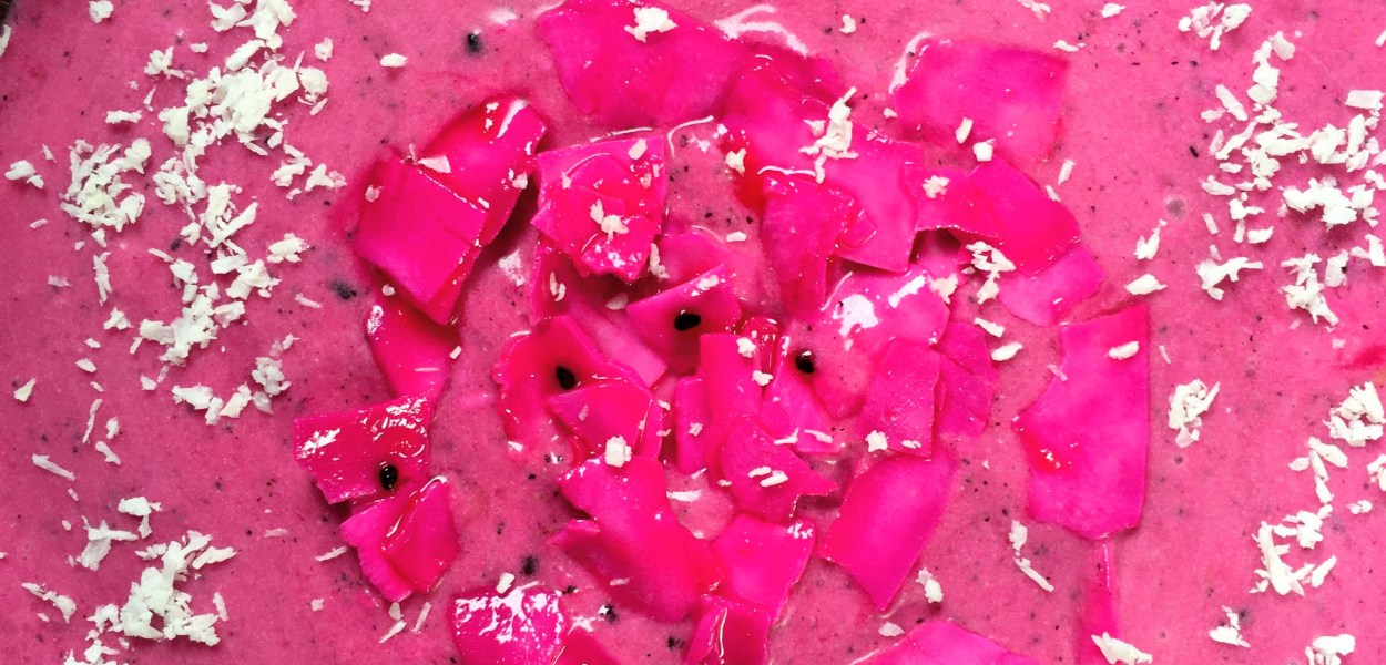Now you don’t have to go to Hawaii to experience fuchsia Pitaya fruit in a Hawaiian smoothie bowl!