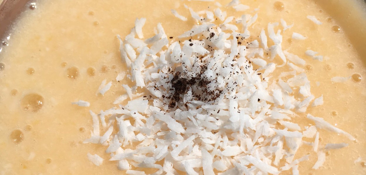 Paleo plant-based peach lassi smoothie with Coconut yogurt