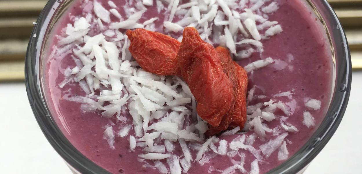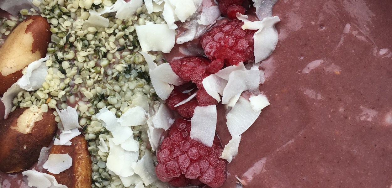 antioxidant rich Acai smoothie bowl with natural protein from nutbutter . a great change up to breakfast smoothie bowls. top with nuts, hemp seeds or other seeds and berries.