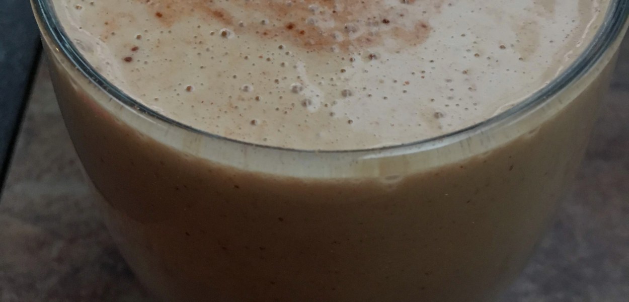 Healthy smoothie with a snickers like chocolate caramel taste from dates and natural nutbutter protein! (sugar free, Dairy free, paleo, high protein smoothie)